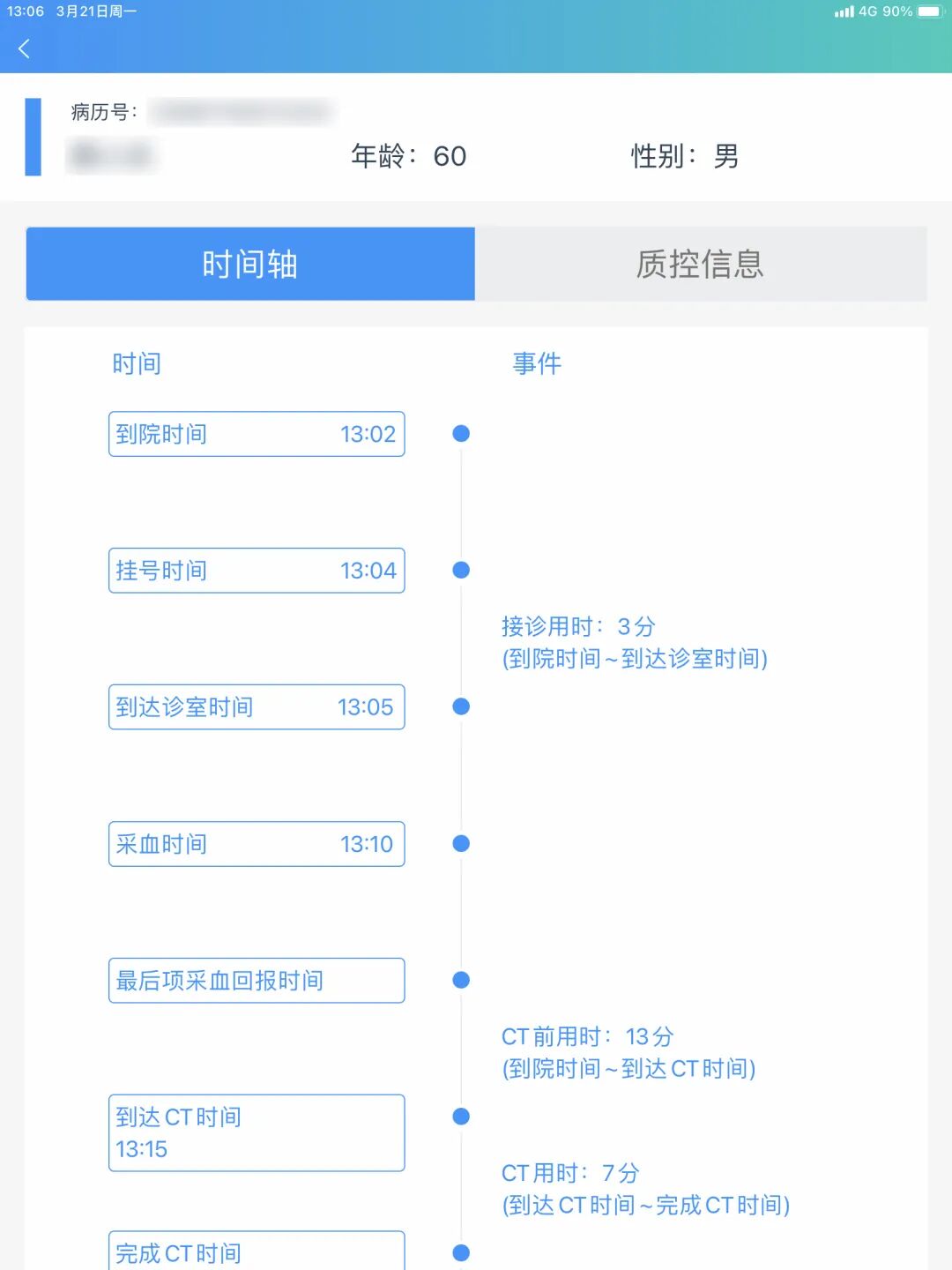 ● 软硬件结合实现时间自动采集,直观展示救治时间轴,实现精细化质控。