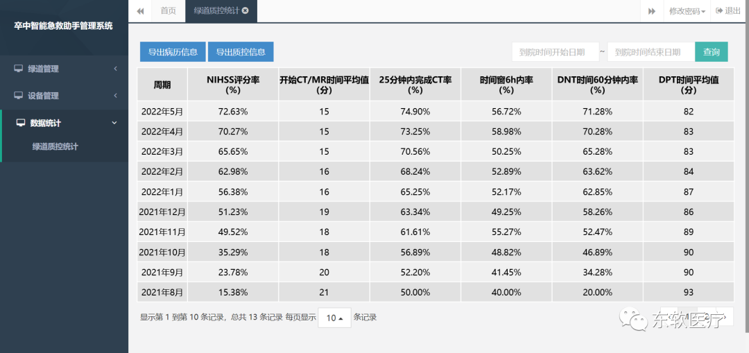 ● 按脑防委上报要求进行数据整理与导出,满足医院上报卒中中心的需求。