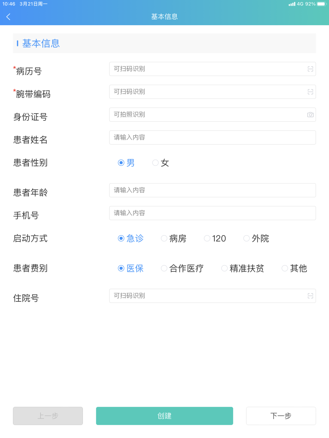 ● 全面支持绿色通道业务开展,快速建立病历信息,记录救治过程中的各项数据。